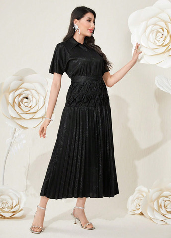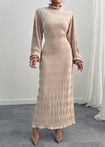 Круглый вырез горловины с закрытым декольте добавляет загадочность и универсальность.