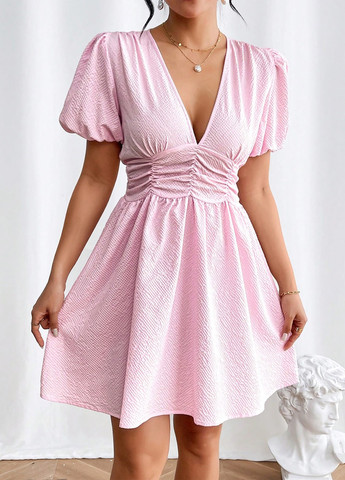 Благодаря нарукавной резинке модное летнее платье голубого цвета можно носить со спущенными плечами.