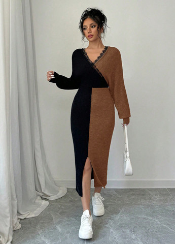 Материал Акрил, Полиэстер, Эластан / Цвет Серый / Фасон Платье-свитер / Длина изделия Миди и ниже колена / Стиль Повседневный, Кэжуал