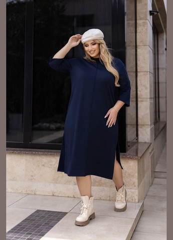Трикотажное платье свободного кроя — воплощение комфорта и стиля. Оно имеет широкий размерный ряд и богатую палитру базовых оттенков. Изготовлено платье из мягкого и приятного на ощупь трикотажа двунитка, оно прекрасно садится на любую фигуру, обеспечивая полную свободу движений. Особенности изделия: Длина миди делает его универсальным выбором как для повседневных, так и для более формальных выходов. Боковые разрезы добавляют образу легкости и динамичности, создавая идеальный баланс между элегантностью и практичностью. Рукава три четверти — удачный выбор для межсезонья, когда важно прикрыть руки, но не перегреваться. Круглая горловина подчеркивает шею, а декоративная строчка вдоль платья придаёт ему особый характер и визуально вытягивает силуэт. Эта модель — идеальный выбор для женщин, ценящих сочетание простоты и утончённости. Длина по спинке:114 см. Длина рукава от плеча:34 см. Длина рукава по внутреннему шву:27 см. Полуобхват груди:41, 46, 51, 56 см. Полуобхват бедер:51, 55, 59, 62 см. Разрез:36 см.