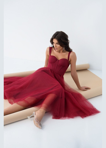Материал Фатин / Цвет Бордовый / Длина изделия Миди и ниже колена / Стиль Коктейльный