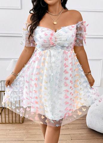 Платье Missord с открытыми плечами в сетчатую ткань имеет приталенный силуэт. Изготовлено из эластичной ткани, имеет однотонный белый цвет и имеет короткие рукава обычной посадки. Платье демонстрирует вырез с открытыми плечами и контрастную накладку для дополнительного визуального интереса. Застежка-молния обеспечивает легкий доступ.