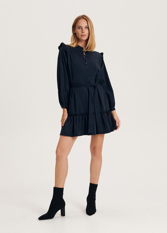 - Если вы обладательница фигуры “прямоугольник”, вам подойдут варианты, которые придадут равновесия пропорциям. Платье с акцентными рукавами на запах — то, что надо!