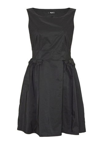 Платье выполнено из 100% полиэстера с лёгким блеском, имеет приятную плотную текстуру и подкладку из 100% ацетата, что обеспечивает комфорт и защиту от просвечивания. А-силуэт с акцентом на талии, свободная юбка в складку, округлый вырез и декоративные банты создают гармоничный, женственный образ.