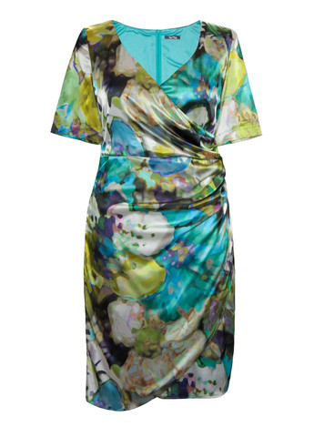 Платье отрезное по линии талии на резинке (ростяжимость 8-10 см), юбка клеш. Выполнено из легкой и прочной ткани - сатин жатый, имеет шероховато-жатую текстуру, красиво ложится по фигуре. По переду выполнен запах на пояс. Рукав втачной, одношовный, на мажете. Ширина регулируется при помощи петель на пуговицы.
