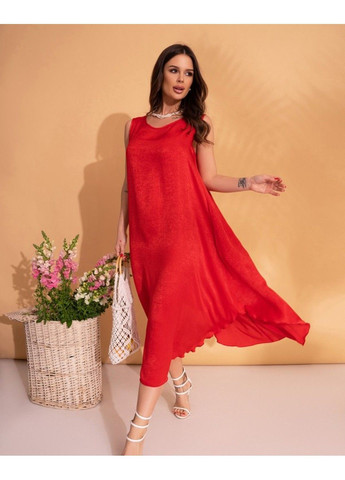 Летний сарафан с боковыми карманами выполнен из блестящего красного сатина. Модель свободного расклешенного кроя трапеции с асимметричным низом и полукруглой горловиной. Полуобхват: Грудь: S(48), M(50), L(52), XL(54), Талия: S(56), M(58), L(60), XL(62), Бедра: S( 64), M(66), L(68), XL(70), Длина изделия - 94/115, Ткань: Низкая эластичность.