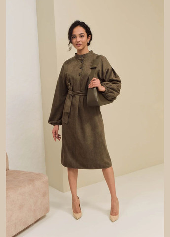 Платье женское с поясом, вырез горловины - рубашечный воротник, сезон - демисезонный, стиль - повседневный (casual), цвет - капучино, принт - однотонный , ткань - замш на дайвинге , состав - 87% полиэстер, 10% вискоза, 3% эластан, , силуэт - прямые , особенности кроя - Платье - рубашка, длина модели - миди длина рукава - три четверти.
