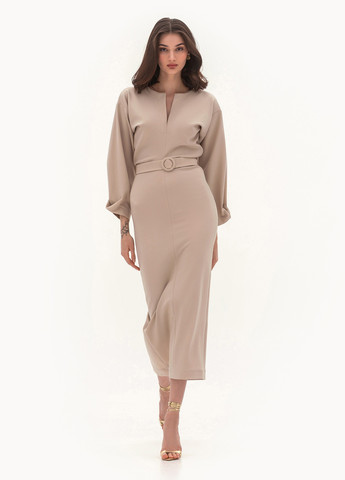 Вид изделия: прямое платье с выделенной линией талии, декорированное конструктивными элементами по рукаву, сьемным поясом с металлической фурнитурой и функциональной молнией по низу. Силуэт и длина: приталенный, полуприлегающий; длина миди. Посадка по линии талии: классическая. Плотность и вид ткани: средней плотности текстиольный материал с добавлением эластана. Вид застежки: молния, кнопка. Наличие подкладочной ткани: присутствует. Наличие и вид карманов: отсутствуют. Вырез горловины: овальный. Вид рукава: втачной, с декоративным узлом по низу. Уход за изделием: Деликатная, быстрая, ручная стирка при 30 градусах, без использования агрессивных моющих средств. Размер изделия на фото: UA 40; еur 34; USA 2; INT XXS. Параметры модели на фотографии: Рост: 179см, ОГ - 89см, ОТ - 60см, ОБ - 89см. Измерения изделия: Ширина изделия по линии груди: 40р. - 87см, 42р. - 91см, 44р. - 95см, 46р. - 99см, 48р. - 103см, 50р. - 107см, 52р. - 111см. Ширина изделия по линии талии: 40р. - 64,4см, 42р. - 68,4см, 44р. - 72,4см, 46р. - 76,4см, 48р. - 80,4см, 50р. - 84,4см, 52р. - 88,4см. Ширина изделия по линии бедер: 40р. - 90см, 42р. - 94см, 44р. - 98см, 46р. - 102см, 48р. - 106см, 50р. - 110см, 52р. - 114см. Длина изделия: 40р. - 141,9см, 42р. - 142,6см, 44р. - 143,3см, 46р. - 144см, 48р. - 144,7см, 50р. - 145,4см, 52р. - 146,1см.