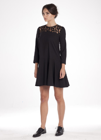 стильное ажурное платье, сзади застежка пуговицу и на потайную молнию, дополнено подкладкой. Платье отлично подойдет выхода в свет. Лучше всего будет сочетаться с обувью на каблуке. На размер S длина изделия по спинке: 89 см, длина рукава (от плеча): 45 см. В изделии возможно повреждение бирки