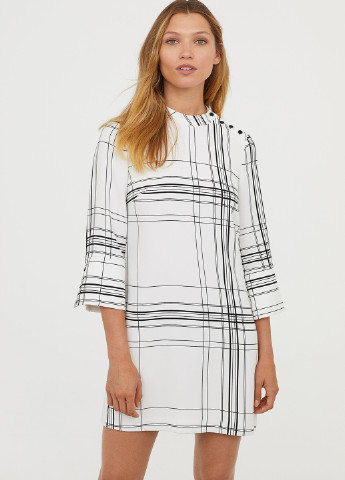 Материал Полиэстер / Цвет Черно-белый / Фасон Платье-рубашка / Длина изделия Мини / Стиль Кэжуал