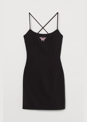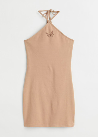 Короткое, облегающее платье из тканого эластичного материала с открытой спиной. Узкие бретели перекрещиваются и завязываются на спине.
