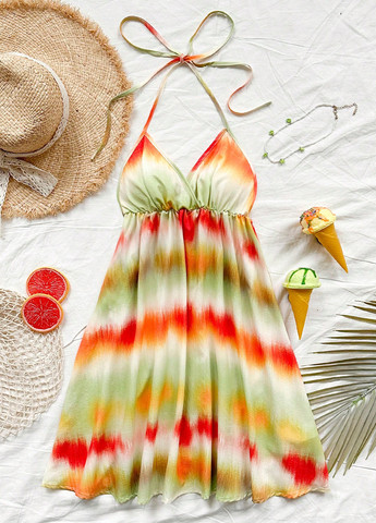 Это женское платье мини имеет элегантный дизайн с драпированной горловиной. Полупрозрачная трикотажная ткань обеспечивает высокую эластичность, а вырез придает изделию изысканность. Цветочный принт тай-дай по всей поверхности придает платью неповторимый вид. Оно имеет приталенный крой, мини-длину, карандашный низ и естественную линию талии.