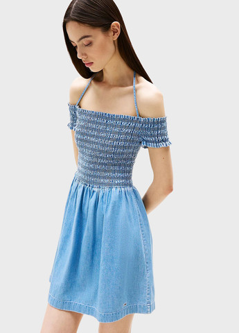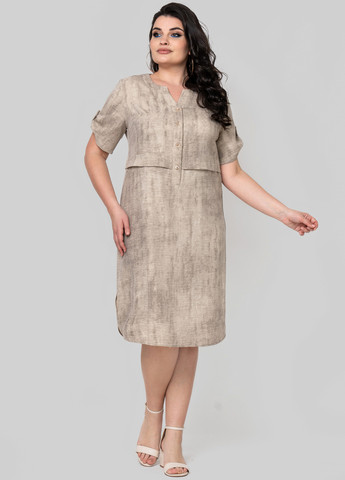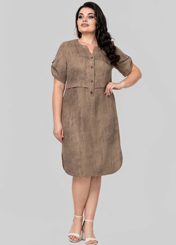 Платье полуприлегающего силуэта, отрезное по линии талии. Выполнено из ткани лён бохо, ткань имеет смешанный состав, что даёт ей ряд преимуществ, а именно: мягкость, гладкость, высокая прочность благодаря нейлону в составе, износостойкость, воздухопроницаемость, непрозрачность, низкая сминаемость.Рукав втачной, одношовный, длина регулируется при помощи пата и пуговицы. Фигурный борт с застёжкой на пуговицы. По правой стороне полки выполнен накладной карман.