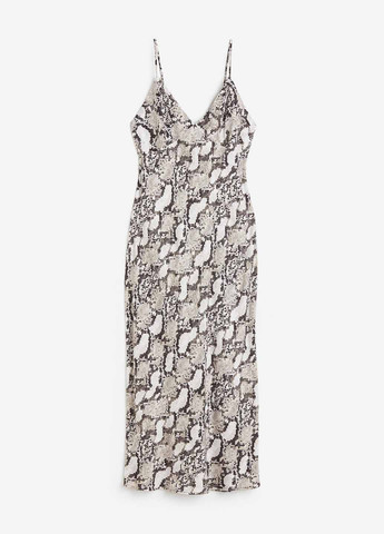Атласное платье с принтом питона из линии Erica от Yamamay. Эта неотразимая одежда из флэш-капсулы изготовлена из струящегося атласа и отличается легким принтом питона, что делает ее незаменимой в сезоне. Платье без рукавов отличается широкой бретелью, v-образным вырезом и асимметричным низом. Эта одежда идеально подходит для тех, кто любит платья с эффектом нижнего белья в современном и модном стиле.