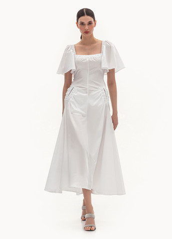 Вид изделия: удлиненное, расклешенное платье, с декоративными, задраппированными элементами и плечевой линией на эластичной ленте (резинке). Силуэт: приталенный, расклешенный, полусвободный. Посадка по линии талии: классическая. Плотность ткани: неплотный, хлопковый материал. Вид застежки: молния по спинке. Наличие и вид карманов: прорезные, внутренние. Вырез горловины: карэ. Вид рукава: втачной, собранный, короткий, на резинке. Уход за изделием: деликатная, быстрая, ручная стирка при 30 градусах, без использования агрессивных моющих средств. Размер изделия на фото: size UA 42; size eur 36; size USA 4; size INT XS.13. Параметры модели на фотографии: Рост: 179см, ОГ - 89см, ОТ - 60см, ОБ - 89см. Параметры изделия: Ширина изделия по линии груди: 40р. - 96см, 42р. - 100см, 44р. - 104см, 46р. - 108см, 48р. - 112см, 50р. - 116см, 52р. - 120см. Ширина изделия по линии талии (классическая): 40р. - 68см, 42р. - 72см, 44р. - 76см, 46р. - 80см, 48р. - 84см, 50р. - 88см, 52р. - 92см. Ширина изделия по линии бедер: 40р. - 118см, 42р. - 122см, 44р. - 126см, 46р. - 130см, 48р. - 134см, 50р. - 138см, 52р. - 142см. Длина изделия: 40р. - 131,3см, 42р. - 131,8см, 44р. - 132,3см, 46р. - 132,8см, 48р. - 133,3см, 50р. - 133,8см, 52р. - 134,3см.