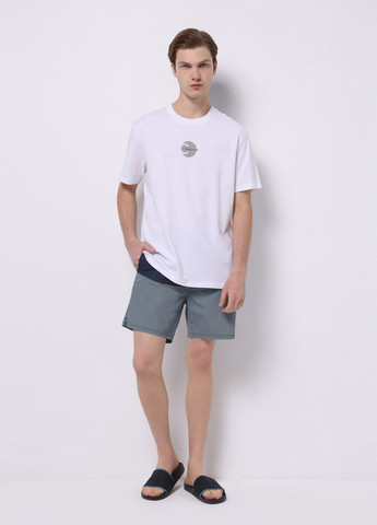 - Низкорослым мужчинам лучше обратить внимание на пляжные вещи с вертикальными боковыми полосками – они будут удлинять силуэт. В этом случае лучше выбирать нейтральные оттенки: голубые, бежевые, серые, светло-зеленые.