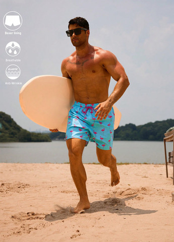Мужские пляжные шорты Manfinity Swimmode с принтом фламинго. Талия затягивается шнурком. Есть карманы. Рекомендуется машинная стирка.