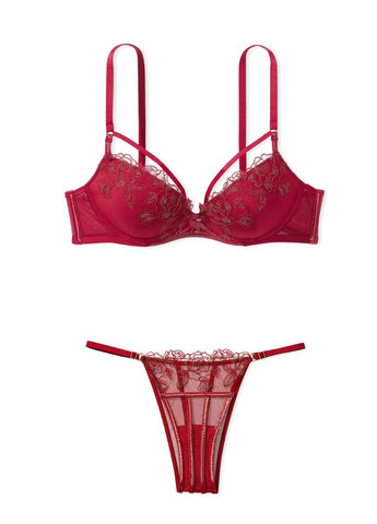 Комплект белья Victoria´s Secret. Шикарный комплект, состоящий из бюстье и открытых трусиков. Бюстье подчеркивает вашу естественную форму, обеспечивая при этом идеальный легкий подъем, соответствующий размеру чашки. Он на лёгкой сетчатой подкладке спереди, чашка на косточках без уплотнителей. Застежка: крючки сзади. Регулируемые, полностью съемные бретели. Украшен кружевом с логотипом спереди и золотистой фурнитурой. Великолепные и дерзкие трусики, которые действительно найдут свое место в вашем ящике для нижнего белья. Стильные открытые трусики из сетчатой ткани с эластичными бретелями. Сзади и спереди золотистая фурнитура в виде розочки. Хлопковая ластовица. Смотрится очень эффектно и стильно. Отличное качество.