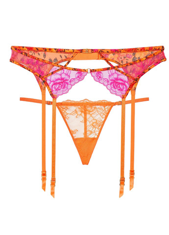 Цвет Оранжевый / Состав пояс: 84% полиамид, 16% эластан/трусики: 95% полиэстер, 5% эластан / Узор Цветочный