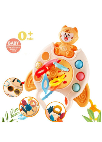 Многофункциональная погремушка станет любимой игрушкой малыша и привлечет его внимание на долгое время. Игрушка изготовлена из высококачественного силикона и безопасного пластика, не содержит BPA и фталатов, проста в уходе. Погремушка не имеет острых углов и содержит те функции, которые так любят малыши: тянуть, нажимать и грызть. Функции: можно перетаскивать силиконовые эластичные разноцветные веревочки; нажимать на мягкие полусферы; использовать как "грызунок"; трясти как погремушка. Наличие большого количества текстурных элементов и звуковых эффектов помогает развивать тактильное, зрительное и слуховое восприятие, стимулирует любопытство, способствует изучению цвета и тренирует мелкую моторику. Размер игрушки: 16х11,5х5 см; Возрастная категория: 3 мес.