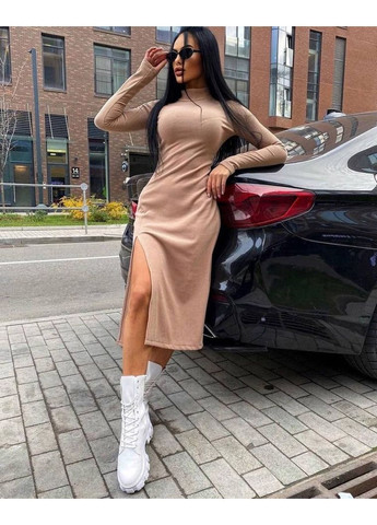 Материал Трикотаж / Цвет Бежевый / Длина изделия Миди и ниже колена / Стиль Повседневный, Кэжуал