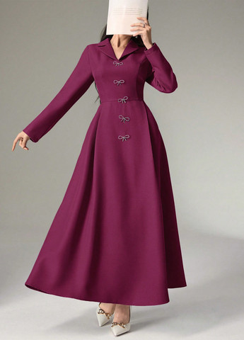Элегантное отрезное платье миди с английским воротником может стать любимой вещью для женщины, ценящей практичность и не забывающей о модных тенденциях. Модель дополнена рукавами длиной 3/4 с манжетами-отворотами, карманами в боковых швах и застежкой в виде двух рядов пуговиц спереди.