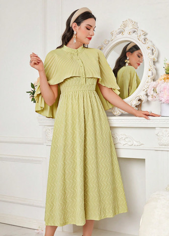 See by Chloe сиреневое праздничный, коктейльное, деловое, пляжное, откровенный, повседневный, кэжуал, вечернее стильное платье кейп оверсайз, платье-кейп, а-силуэт, в стиле ампир завязки рукав 3/4 вискоза, полиэстат - производство – ПортугалияM