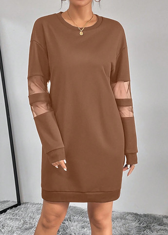 Платье - свитшот, однотонное, мини, без застежки, круглый вырез горловины, длинный рукав, два боковых кармана. На размер S ПОГ - 48 см, рукав - 60 см, длина по спинке - 86 см.