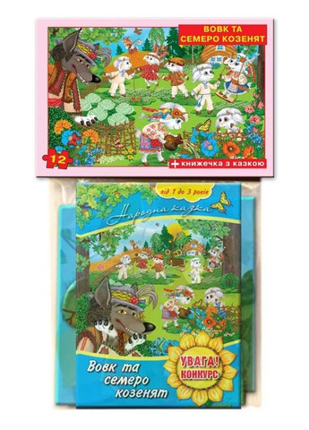 Юные сказочники и любители интересных историй по достоинству оценят увлекательные детские пазлы "Волк и 7 козлят" 81176. Игровой набор, представленный по мотивам украинской народной сказки, - большое игровое поле размером 300 х 420 мм, с которым легко справится даже новичок. Картинка разделена на 12 частей, из которых ребенку необходимо самостоятельно собрать целую картинку. В наборе имеется также полноцветная, интересная книжечка со сказкой. Подобные игры с чтением детских сказок не только расширяют словарный запас малыша, но и помогают правильно строить диалог, развивают связную логическую речь. Складывая элементы пазла, Ваш юный гений научится составлять из частей целое, сопоставлять отдельные элементы по форме, цвету, размеру. Сказка не только помогает формировать основы поведения и общения, но и прекрасно развивает фантазию, воображение и "слуховую" память малыша. После того, как ребенок сможет составлять цельную картинку, усложните задание, предложите крохе собрать пазл на время, самостоятельно без посторонней помощи.
