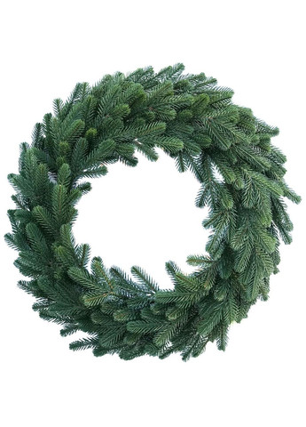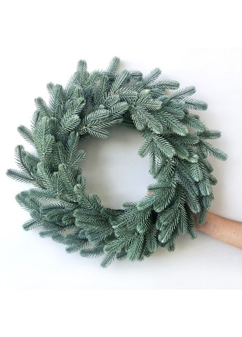 Новогодний декоративный венок диаметром 50 см представляет собой переплетенные ветки искусственной елки. Изготовлен из 100% литой хвои. Иголочки как у живой елки, но мягкие и не колючие. Без декора. Существует старинное поверие – новогодний рождественский венок обязательно должен быть в доме на Рождество. Он является оберегом, охраняет дом, привлекая к нему радость, благополучие, мир. В преддверии зимних праздников дизайнеры предлагают разнообразные идеи для создания праздничного интерьера для встречи Рождества и Нового года. Самый распространенный вариант – украшение входной двери. Повесьте хвойный венок на межкомнатную дверь в гостиную или спальню. Вы можете купить любой новогодний еловый венок и просто повесить его с наружной стороны двери. Или проявить фантазию и украсить добавив по своему вкусу банты, колокольчики, шарики или деревянные подвески, снежинки или несколько веток ягод. Или украсить несколькими дольками декоративного апельсина, палочками корицы, шишечками. Вариантов может быть множество, придумывайте рождественскую композицию вместе с детьми, они тоже захотят проявить фантазию. Внизу двери можно поставить светящийся фонарик или вазы с хвойными ветвями. Завершает общий вид хвойная гирлянда в том же стиле, оформленная в тех же тонах. Используйте традиционный европейский вариант – положите новогодний венок на стол. Вокруг него поставьте несколько свечей, добавьте разноцветные шарики, искрящиеся снежинки, нити бусин, фигурку Санта-Клауса или гномика. Хорошо сервируйте праздничный стол для встречи Нового Года или Рождественского обеда. Мечтайте, творите, и ваши идеи наполнят дом радостью, волшебством, немного магией!