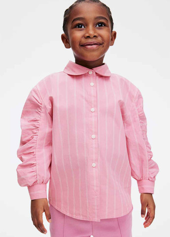 Рубашка с коротким рукавом, отложным воротником и застежкой спереди.
