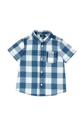 Особенности: материал – экологически чистый хлопок; застежки-кнопки; принт в клетку; классический воротник; накладной карман спереди; сертифицирована OEKO-TEX®.