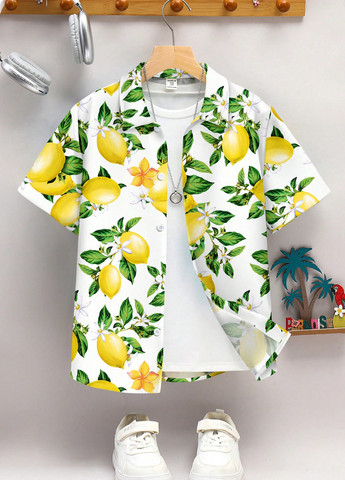 Рубашка для мальчиков в стиле ретро для пляжного отдыха. Эта повседневная рубашка отлично подходит для лета. Имеет стандартный воротник и рукава. Застёжка на пуговицы спереди. Можно стирать в стиральной машине или чистить в химчистке.