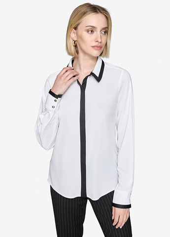 Женская легкая рубашка Karl Lagerfeld. Стильная рубашка с контрастной отделкой от Karl Lagerfeld. Отложной воротник. Длинные рукава с манжетами на пуговицах. Низ закруглен. Застегивается спереди на пуговицы, которые скрыты планкой. Отличное качество.