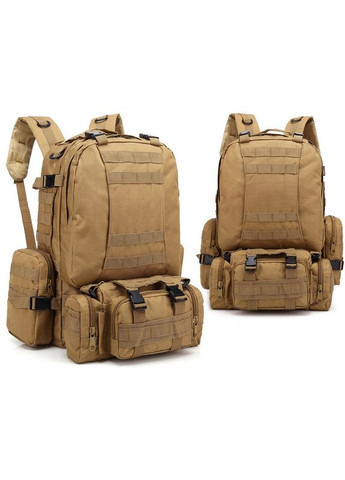Тактический рюкзак с итогами на 50 литров производный военный рюкзак 4 в 1 с системой M.o.l.l.e Coyote Рюкзак штурмовой тактический Тactic – крепкий рюкзак для охоты, рыбалки, туризма и экстремальных видов отдыха. Рюкзак выполнен из крепких влагозащищенных синтетических тканей. Эргономика рюкзака и используемые материалы позволяют сохранять его форму независимо от загрузки. Удобный и надежный крепеж ремней и лямок способствует надежной фиксации рюкзака на теле и комфортному его использованию даже при необходимости перемещения бегом. Внутренняя конструкция отделений: Благодаря системе MOLLE можно снимать итоги, прибавлять другие, прикреплять рюкзаки друг к другу; С помощью грудного ремня Вам будет удобно, быстро и надежно фиксировать и снимать рюкзак; Можно легко подогнать рюкзак под себя регулируемыми ремнями плечевой, грудной клетки и пояса; Съемные боковые и фронтальная сумка можно использовать отдельно. При чем сумочка в отдельном виде имеет собственный ремень через плечо или пояс; Основное отделение с внутренним карманом; Мягкая анатомическая зона спины; Мягкие эргономичные плечевые лямки с D-кольцами регулируются по длине; Регулируемый нагрудный ремень; Стропы M.O.L.L.E для дополнительной экипировки. Системы ремней и стяжек: Объем рюкзака регулируется крепкими боковыми ремнями; Мягкие утолщенные регулируемые плечевые лямки Поясной ремень с быстроразъемным замком фастекс; Система M.O.L.L.E. для крепления дополнительных итогов на боковых сторонах основного отделения, передних карманах и плечевых лямках рюкзака; Ручка для переноски рюкзака сверху основного отделения. Характеристики рюкзака: Размеры рюкзака (без прикрепляемых элементов) (Д х Ш х Г): 53 см х 35 см х 22 см; Основное отделение (Д х Ш х Г): 52 см х 32 см х 16 см; Верхний внешний карман (Д х Ш х Г): 33 см х 30 см х 7 см; Объем: 50 литров; Вес: 1350. Передний подвесной итог: Размер итога (с боковыми карманами) (Д х Ш х Г): 35 см х 15 см х 13 см; Боковые карманы: 13 см х 8 см х 6 см; Передний карман: 20 см х 12 см х 4 см. Боковые подвесные итоги: Размер итога (Д х Ш х Г): 20 см Х 13 см Х 6 см. Назначение – охота, рыбалка, туристический поход, скалолазание, путешествие, спорт, страйкбол, военные действия.