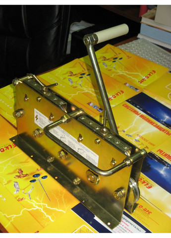 Устройство для выравнивания прута токоотвода 6-10 мм и полосы оцинкованной 20-30 мм. Прибор для выравнивания катанки молниезащиты диаметром 7-10 мм и оцинкованной шины 20-30мм. Для монтажа молниезащиты предлагаем воспользоваться специальным станком (устройством, прибором) для выравнивания. В результате рихтовки катанка оцинкованная даже диаметром 10 мм получается идеально ровной, сокращается время монтажа, сама сетка молниезащиты выглядит идеально ровной.