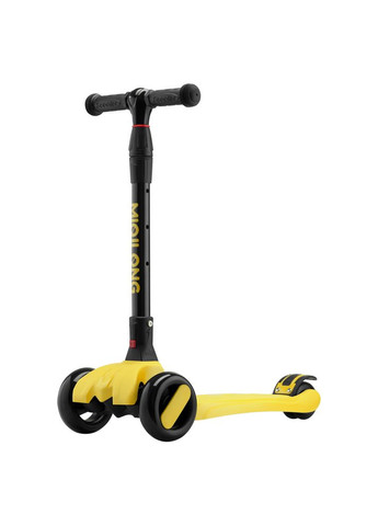 Самокат Miqilong Fargo желтый – функциональный и яркий, компактно складывается, удобен для переноски и имеет небольшой вес. Ручку управления можно снять и быстро закрепить при необходимости. Широкая противень самоката, имеет специальное покрытие от скольжения. Самокат очень крепкий, устойчивый и выдерживает большие нагрузки. Для самых маленьких гонщиков, которые только начинают кататься, существует соответствующий режим, где передние колеса блокируются в прямом положении. Уверенные пользователи смогут кататься в спортивном режиме с включением передних поворотных колес. Для переключения режимов используют специальный рычаг на стойке. Благодаря удобной форме накладок на руль, самокатом удобно управлять даже на достаточно большой скорости. Характеристики: Диаметр колёс: 120 мм, 80 мм; Цвет: желтый; Вес: 3,5 кг. Особенности: Сложная конструкция; LED подсветка колес; Фиксация передних колес; Высокая прочность конструкции; Нескользящее покрытие противни; Задний тормоз; Резиновые грипсы. Рекомендовано для детей от 3 лет.