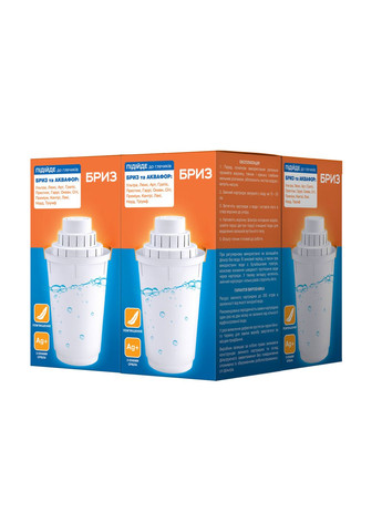 Подходит к фильтрам-кувшинам Бриз и Барьер Уникальная конструкция сменного картриджа обеспечивает легкость его замены и необходимую скорость протока воды. Картридж осуществляет многоступенчатую очистку воды. Он удаляет механические примеси: ржавчину, песок; соли жесткости и соединения хлора. В процессе фильтрации полностью устраняется неприятный запах и привкус. Очищенная вода отлично подходит для питья и приготовления пищи. Используемые материалы и компоненты изготовлены из нетоксичных материалов, допущенных для контакта с питьевой водой и соответствующих требованиям ТУ У 29.2-2648400275-001:2011 Состав картриджа: специальные ионообменные смолы волокнистые ионообменные материалы кокосовый активированный уголь кокосовый активированный уголь, обработанный серебром Комплект поставки: Упаковочная коробка - 3шт. Сменная кассета в герметичной упаковке -3шт. Производительность: Производительность (расход воды) не менее 3-х л/час. Ресурс сменной кассеты 350 литров* При потреблении до трех литров воды на человека в день средняя продолжительность работы одной сменной кассеты: для 1 человека – 90 дней для семьи из 2-х человек – 50 дней для семьи из 3-х человек – 30 дней для семьи из 4-х человек – 25 дней *Ресурс сменной кассеты зависит от качества исходной воды. Сменные картриджи: Картридж «БРИЗ Стандарт+» предназначен для высококачественной очистки водопроводной воды от соединений хлора, хлорорганики, ржавчины, органических примесей, устранения запаха и улучшения вкуса воды. Картридж подходит для фильтров кувшинов Барьер ЭКСПЛУАТАЦИЯ Перед началом использования тщательно промойте воронку, кувшин и крышку слабым мыльным раствором, ополосните чистой водой и вытрите насухо. Замочите сменный картридж в воде на 15 – 20 мин. Извлеките картридж из воды и вставьте его в воронку до упора, наполните воронку фильтра холодной водой, слейте первые две-три порции очищенной воды. При регулярном использовании не оставляйте фильтр без воды. В зимний период, а также при использовании воды с пузырьками воздуха, возможно снижение скорости протекания воды через картридж. В таком случае вытащите сменный картридж и несколько раз встряхните его. Рекомендации: не используйте фильтр для очистки воды, небезопасной в микробиологическом отношении применяйте фильтр только по назначению не реже, чем один раз в месяц промывайте воронку и кувшин фильтра слабым мыльным раствором, ополаскивайте чистой водой и вытирайте насухо не допускайте длительного нахождения фильтра под прямыми солнечными лучами в случае длительных перерывов в работе фильтра (более недели) отфильтрованную воду слейте, а детали фильтра протрите насухо чистым полотенцем. Прежде чем снова начать использовать фильтр, повторите процедуру подготовки фильтра к работе Преимущества применения сменного картриджа Бриз Стандарт+ Привлекательное сочетание стоимости картриджа и качества очищаемой воды, возможность установки в фильтры-кувшины аналогичных конструкций. СВОЙСТВО ХАРАКТЕРИСТИКА Высота 143 мм Ширина 62 мм Глубина 62 мм Высота картриджа 125 мм Диаметр картриджа 60 мм Температура очищаемой воды + 4 ° ... + 38 °С Размер коробки 62x62x143 мм Срок хранения 3 года Тип Картридж для кувшина Тип фильтрации Умягчение, Удаление хлора/ органики Назначение Для кувшина