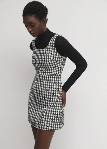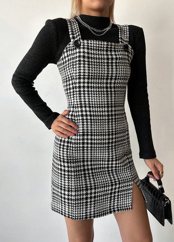 Сарафан лаконичного кроя с бретельками из экокожи и серебряными пряжками. Длина бретельки регулируемая. Ткань утепленная, средней плотности, с мелким узором "гусиная лапка". На модели 38 размер. Замеры для 38р: длина по спинке - 90см (каждый последующий размер +1см), ПОГ 45см, ПОТ 44см, ПОБ 49см (каждый последующий размер +2см)