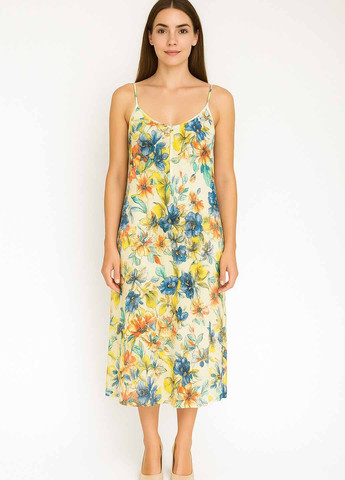 Подол сарафана легко колышется в ритме твоей походки, создавая ощущение «живой» ткани — словно он танцует вместе с тобой. Это именно та длина, которая прекрасно сочетается и с шлёпанцами, и с изящными босоножками на каблуке.