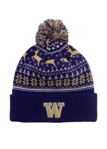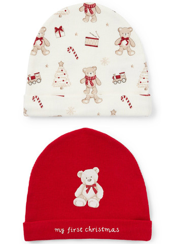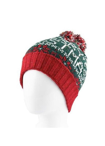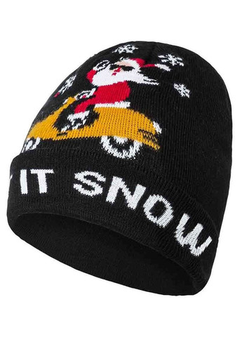 Теплая вязаная шапка с бубоном на меховой подкладке под овчину с новогодним/рождественским принтом, Lupilu, Германия.