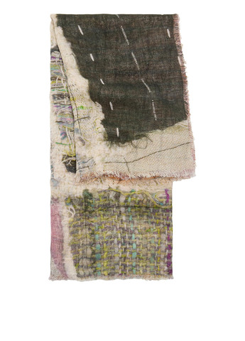 Невесомый шарф-палантин в приятном песочном оттенке (более светлый чем на фото цвет уходящий в желтый спектр). По периметру и вертикально посередине дополнен широкими мятными полосами. Тонкое жатое вискозное полотно марлевого типа позволяет носить изделие как шарф осенью или использовать как легкую накидку в летний период.