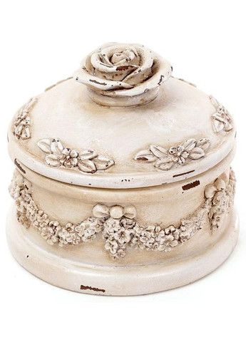 Шкатулка для украшений "Saaling" Роза. Материал – полистоун (искусственный камень). Размер: 10х10х8см. Цвет: белый антик.