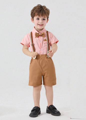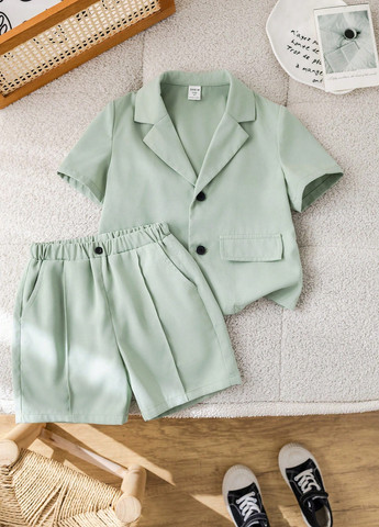 Летний костюм для мальчика BOARNSEORL из двух предметов: рубашка с коротким рукавом и шорты. Комплект включает рубашку цвета хаки с коротким рукавом и шорты. Рубашка и шорты предназначены для мальчиков. Подходят для официальных мероприятий и активного отдыха. Комплект изготовлен из 65% полиэстера и 35% вискозы. Рекомендации по уходу: машинная стирка или профессиональная химчистка.