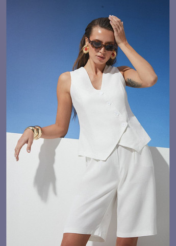 Коллекция Glow & glory презентует яркую и гламурную обновку для вашего летнего гардероба желтые шорты с высокой посадкой. Они украшены складами и принтом в виде белых цветов. Для пошива выбран высококачественный принтованный лен. В комплекте с шортами прилагается съемный пояс, который поможет подчеркнуть стройность фигуры и добавить пикантности образу. Модель также дополнена карманами с отрезным бочком.