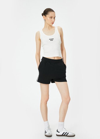 Женские спортивные шорты Coolane, черные. Эти спортивные шорты предназначены для занятий спортом и тренировок. Они выполнены в стиле колорблок и полосатый дизайн. Эластичный пояс и облегающий крой. Трикотаж средней эластичности. Машинная стирка или химчистка.