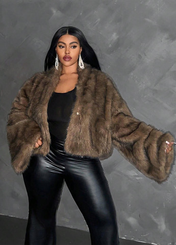 Цвет Коричневый / Длина изделия Короткое / Узор Однотонный / Сезонность Зима / Стиль Кэжуал / Длина рукава Длинный / Тип карманов Без карманов