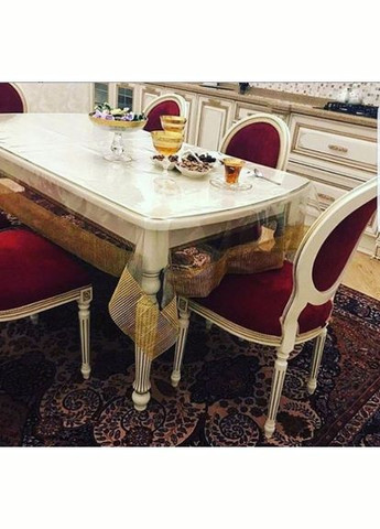 Силиконовая Скатерть со Стразовой Золотой лентой Купить прозрачную Силиконовую Скатерть на кухонный стол- это значит приобрести красивую и практичную вещь, которая будет защищать поверхность столешницы от тепловых и механических повреждений, а также от появлений царапин и сколов. Силиконовая Скатерть со Стразовой Золотой Лентой предотвратит появление пятен на поверхности мебели от пролитого сока,вина, кофе и других напитков.. Современный и изысканный дизайн подойдет под любой интерьер помещения. Можно заказать любой размер скатерти согласно Ваших размеров и форм стола. Материал скатерти очень прочный, плотный и долговечный. Скатерть не требует особого ухода (достаточно использовать неабразивные средства). Полезный Совет: На Силиконовой Скатерти очень удобно замешивать тесто, которое не пристает к поверхности, а остатки теста легко удалить.