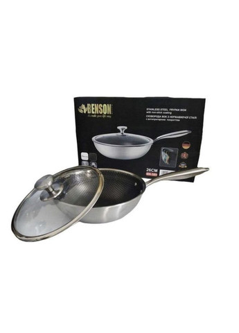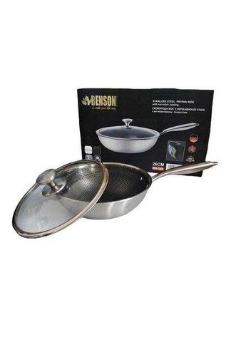 Сковорода – Вок с мраморным покрытием Benson BN-485, диаметр – 26 см. Тело сковороды изготовлено из кованого алюминия с очень высокой теплопроводностью + 3-х слойное мраморное покрытие. Внутри сковорода имеет антипригарное 3-х слойное мраморное покрытие, не содержащее вредных веществ (PFOA, LEAD, Caddium). Индукционное дно Turbo induction эффективнее распределяет тепло, что позволяет сохранять до 35% энергии, также благодаря этому пища не будет подгорать. Структура дна: 3 слоя мраморнФого покрытия - кованый алюминий - сталь. Подходит для использования на индукционных плитах, можно мыть в посудомойках. Эргономичная, приятная на ощупь не нагревающаяся ручка.