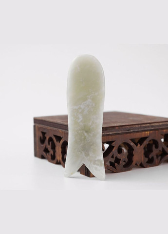 Нефритовый скребок является известным бьюти-гаджетом, с помощью которого выполняется массаж тела и лица, а "Гуаша" — это особая техника древнего китайского массажа. Скребок приятен на ощупь благодаря гладкой поверхности и имеет форму вытянутого, чуть изогнутого сердечка. Он выполнен из натурального нефрита и прохладный на ощупь, как и положено быть камню.